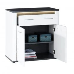 Luca Bessoni Garderobenkommode ALASSIO – weiß Hochglanz – Matera dunkel – 85 cm