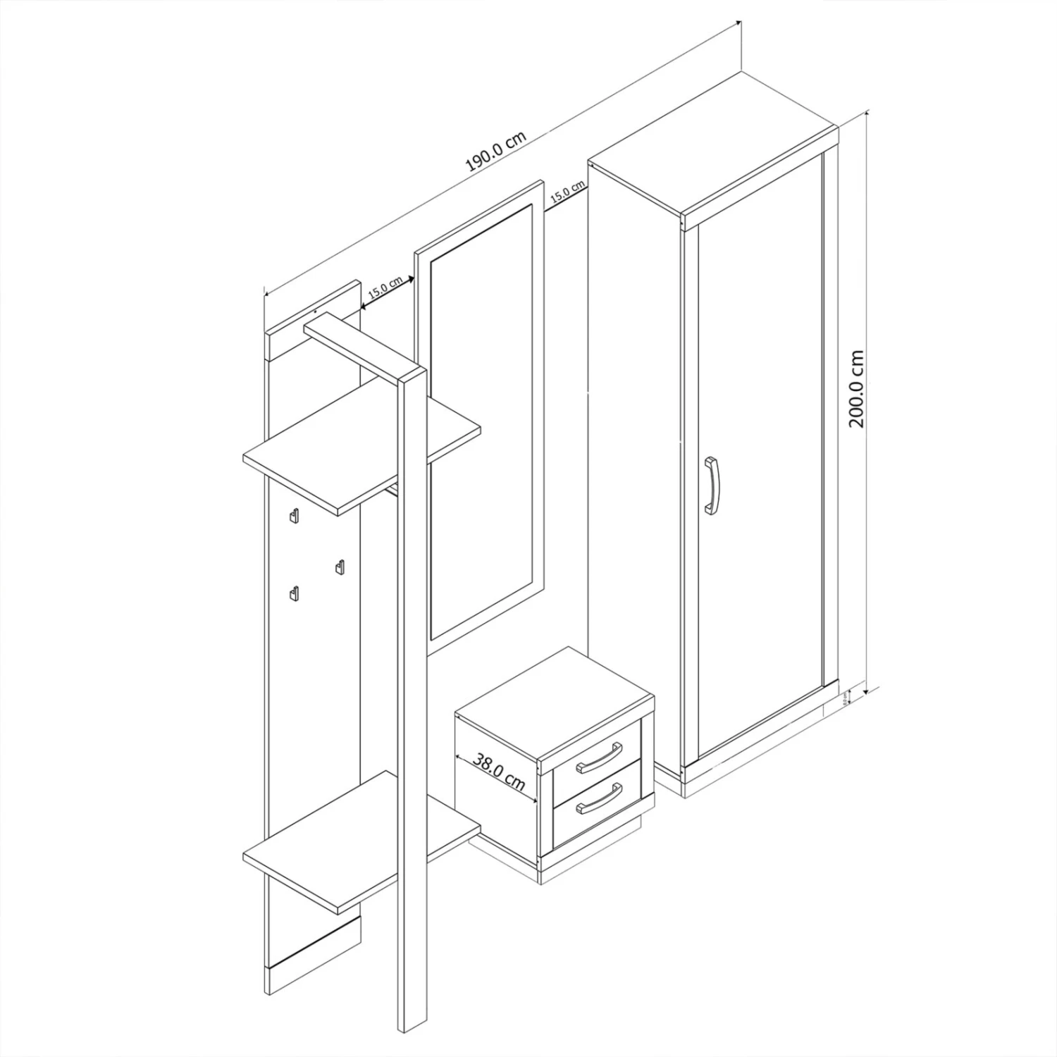 - Stellmaße: BxHxT ca. 190 x 200 x 38 cm