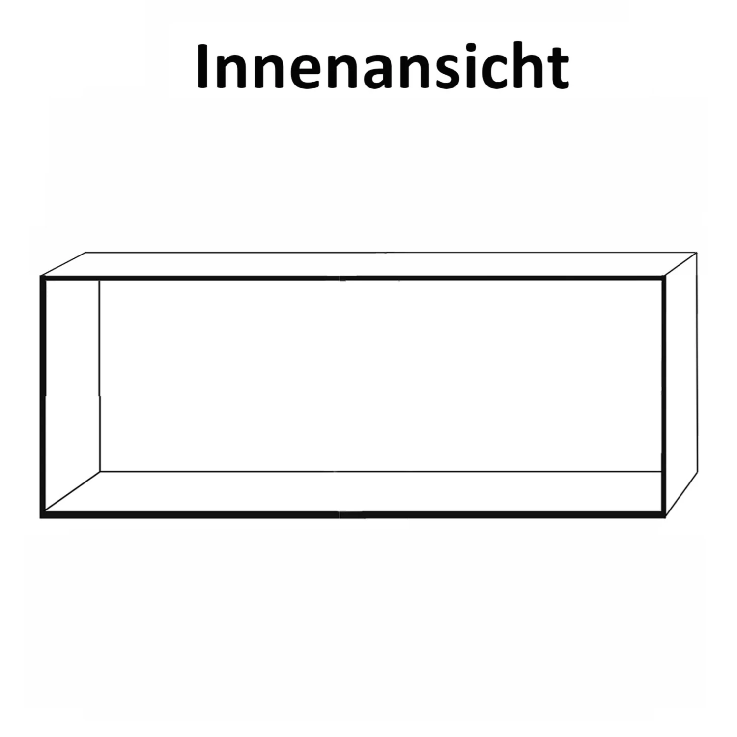 Der Aufsatz aus foliertem Holz in Eiche sägerau Nachbildung eignet sich hervorragend um Schränke mit einer 80er Breite in der Höhe zu erweitern und hohe Decken auszunutzen.