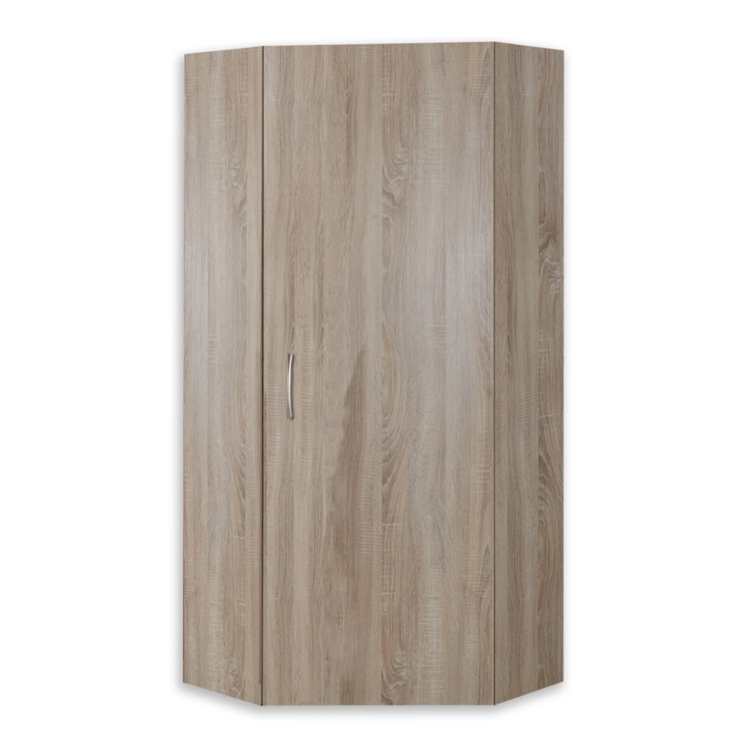 Der Eckschrank in Eiche sägerau Nachbildungist ein wahres Stauraumwunder. Fünf Einlegeböden geben Ihnen die Möglichkeit ganz individuell Ordnung zu schaffen.