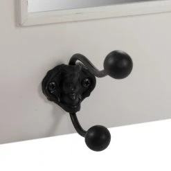 Die Wandgarderobe im Landhausstil mit großem Spiegel und 5 Doppelmetallhaken. Kleine Ablage als Blendschutz über dem Spiegel in Shabby Chic.