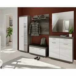 Garderobenbank SCOUT – Rauchsilber – weiß Hochglanz – 90 cm
