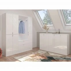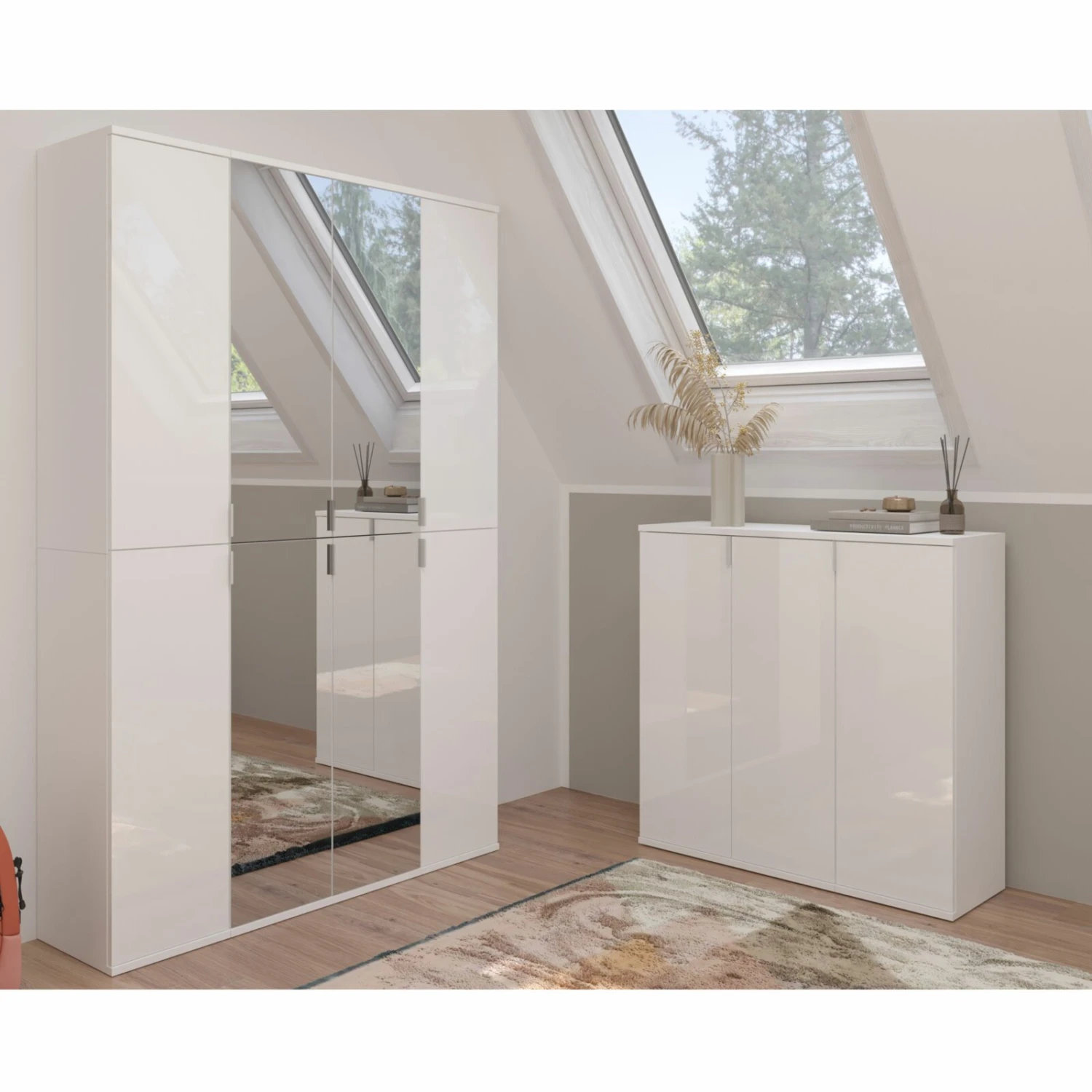 Werten Sie Ihren Flur mit dieser Garderobenkommode auf! Das zeitlose Design in weiß Hochglanz passt sich jedem Einrichtungsstil an und ist definitiv ein Hingucker! Insgesamt drei Einlegeböden teilen den Innenraum intelligent auf.