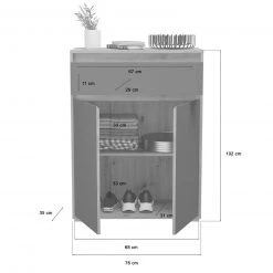Garderobenkommode TORINO – Eiche-grau – Schubkasten – 76 cm