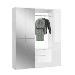 Werten Sie Ihren Flur mit diesem Garderobenschrank auf! Das zeitlose Design in weiß Hochglanz passt sich jedem Einrichtungsstil an und ist definitiv ein Hingucker! Insgesamt fünf Einlegeböden teilen den Innenraum intelligent auf.