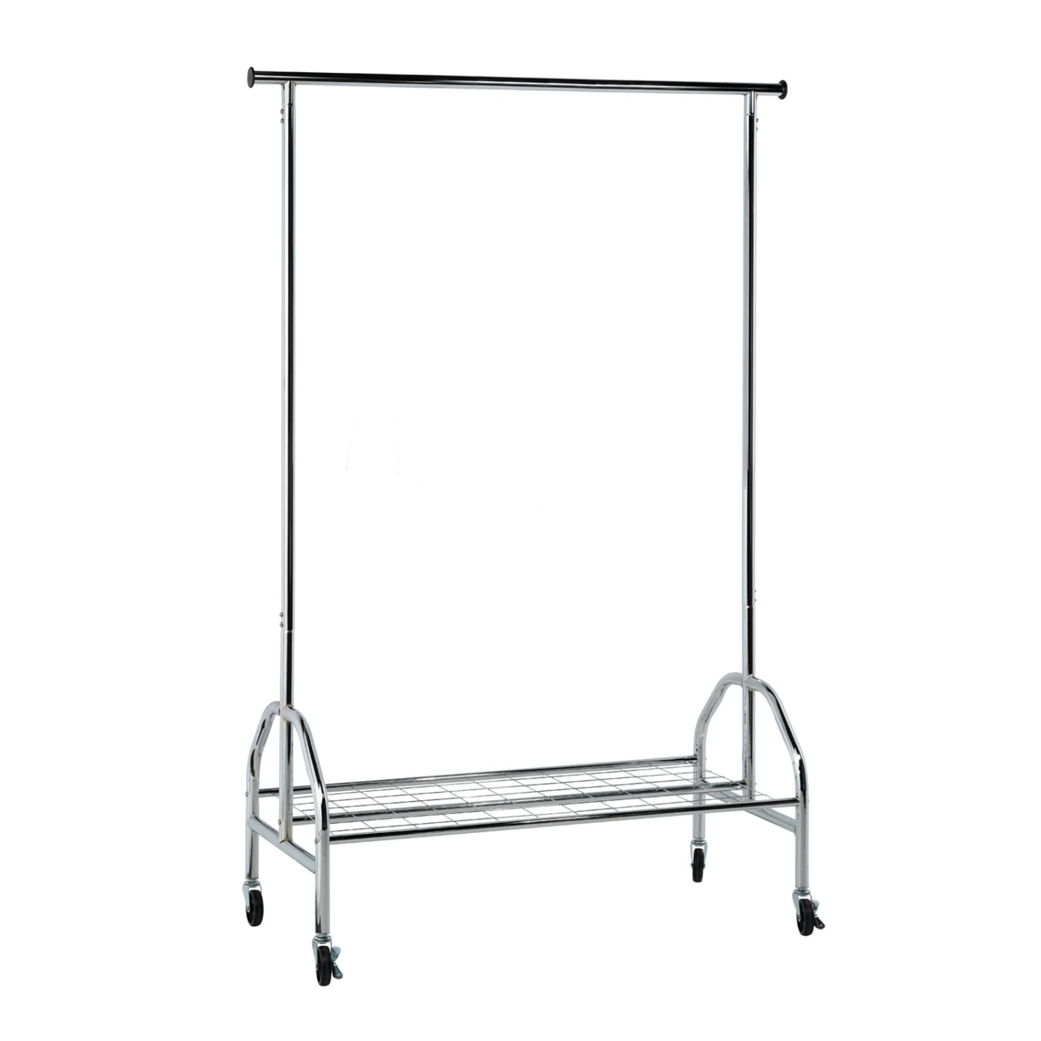 Mit dem Kleiderwagen können Sie Ihre Kleidung knitterfrei aufhängen und haben Sie immer schnell zur Hand. Aufgrund des schmalen Designs nimmt der Wagen nur wenig Platz in Anspruch. Weiterhin bietet er Platz für Ihre Schuhe auf der unten liegenden Schuhablage. Dank der 4 Rollen kann der Kleiderwagen ganz einfach verschoben werden.