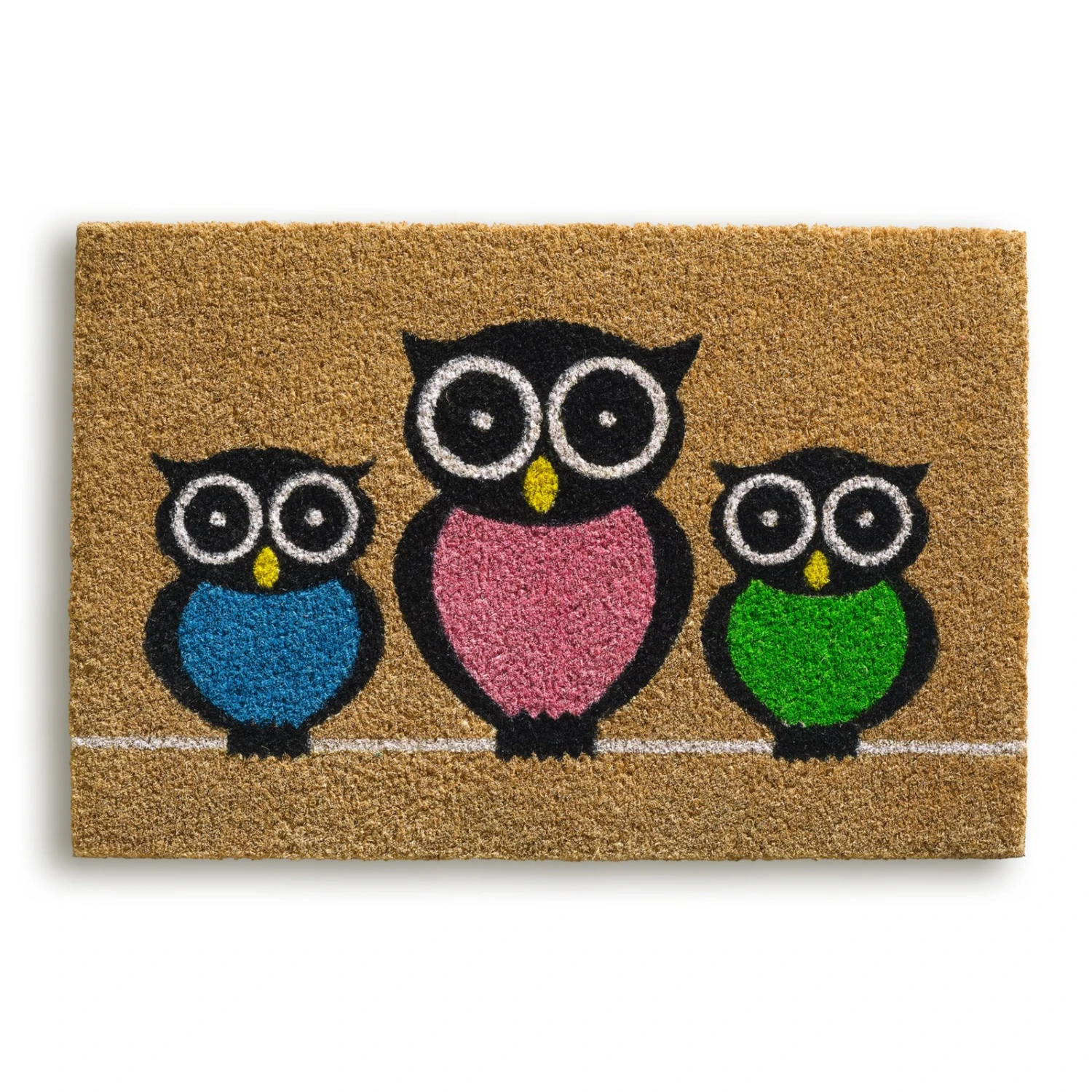 Kokos-Fußmatte – beige – Eulen – 40×60 cm