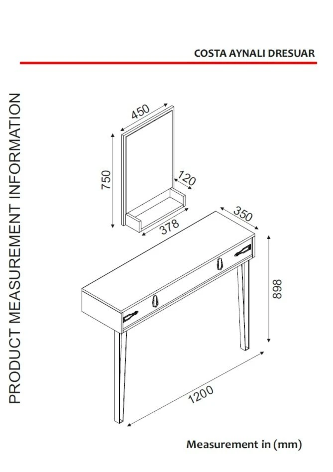 - Maße Tisch: BxHxT ca. 120 x 90 x 36 cm