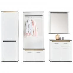 Ein moderner Einrichtungsgegenstand für Ihren Eingangsbereich ist die Garderobenbank, die zusätzlich noch viel Stauraum bietet. Ob für Schuhe, Hundeleinen, Regenschirme oder Einkaufstaschen, hinter den zwei Türen bietet sich Stauraum für mehr Ordnung im Dielenbereich. Das Extra: Die sanfte Beleuchtung überrascht und bringt zusätzlichen Flair in Ihre vier Wände.
