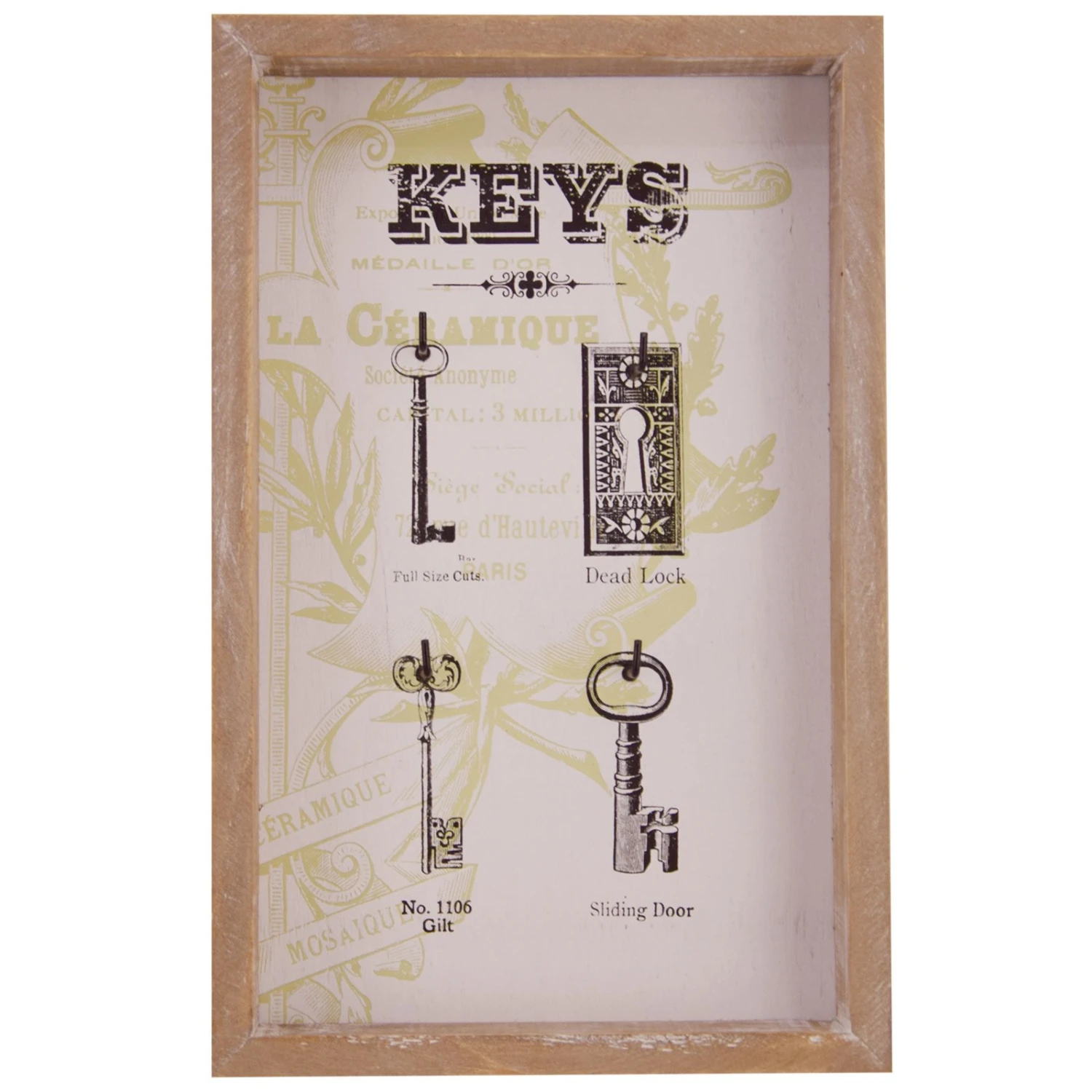 Dieses Schlüsselbrett aus Holz ist ein echter Hingucker. Es ist dekorativ und bringt Ordnung ins Haus. An dem Schlüsselbrett können Sie bis zu vier Schlüssel aufhängen.
