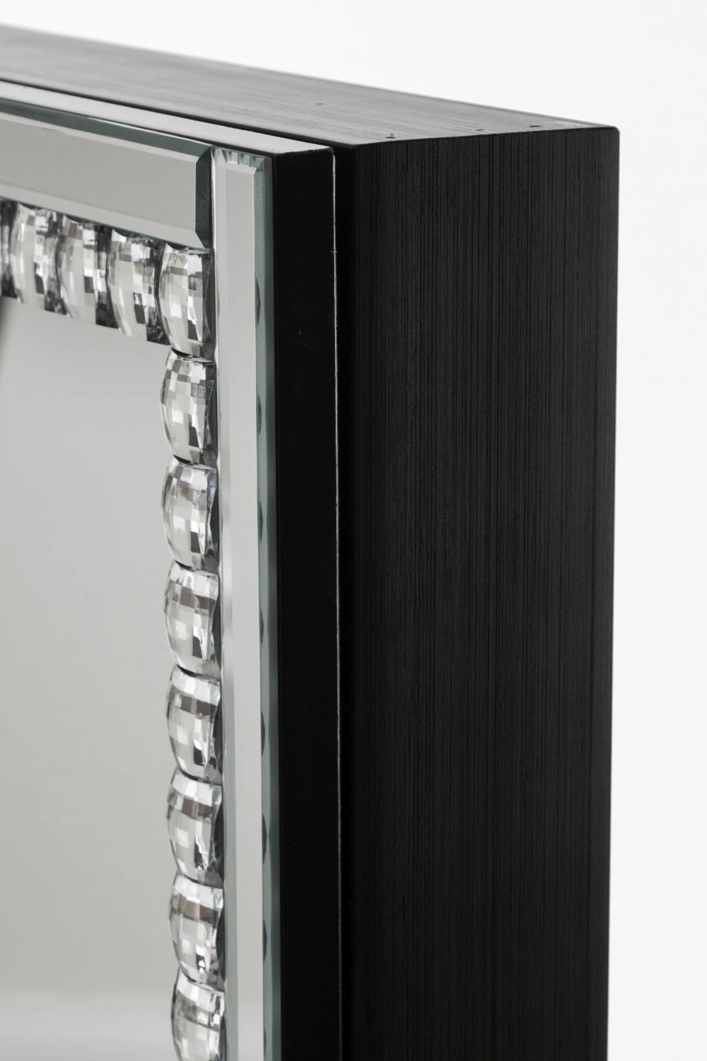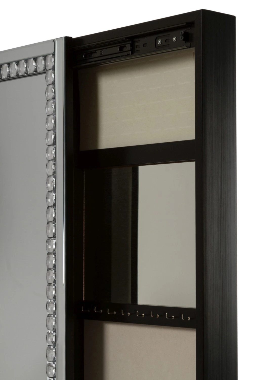 Der verspiegelte Schmuckschrank MARS zeigt bereits mit seinem aufwendig designten Rahmen mit Glitteroptik, dass mit viel Liebe zum Detail gearbeitet wurde. Seine aufwendige Innenauftreilung hilft Ihnen, Ihren Schmuck ordnungsgemäß zu verstauen. Dazu stehen Ihnen mehrere Kettenhalter, diverse Ringschienen und Haken zur Verfügung. Ihre eigene Schatztruhe! Innen ist der Schmuckschrank mit cremefarbenem Samt ausgekleidet und ein zusätzlicher Spiegel hilft Ihnen beim Anlegen Ihrer Lieblings-Schmuckstücke