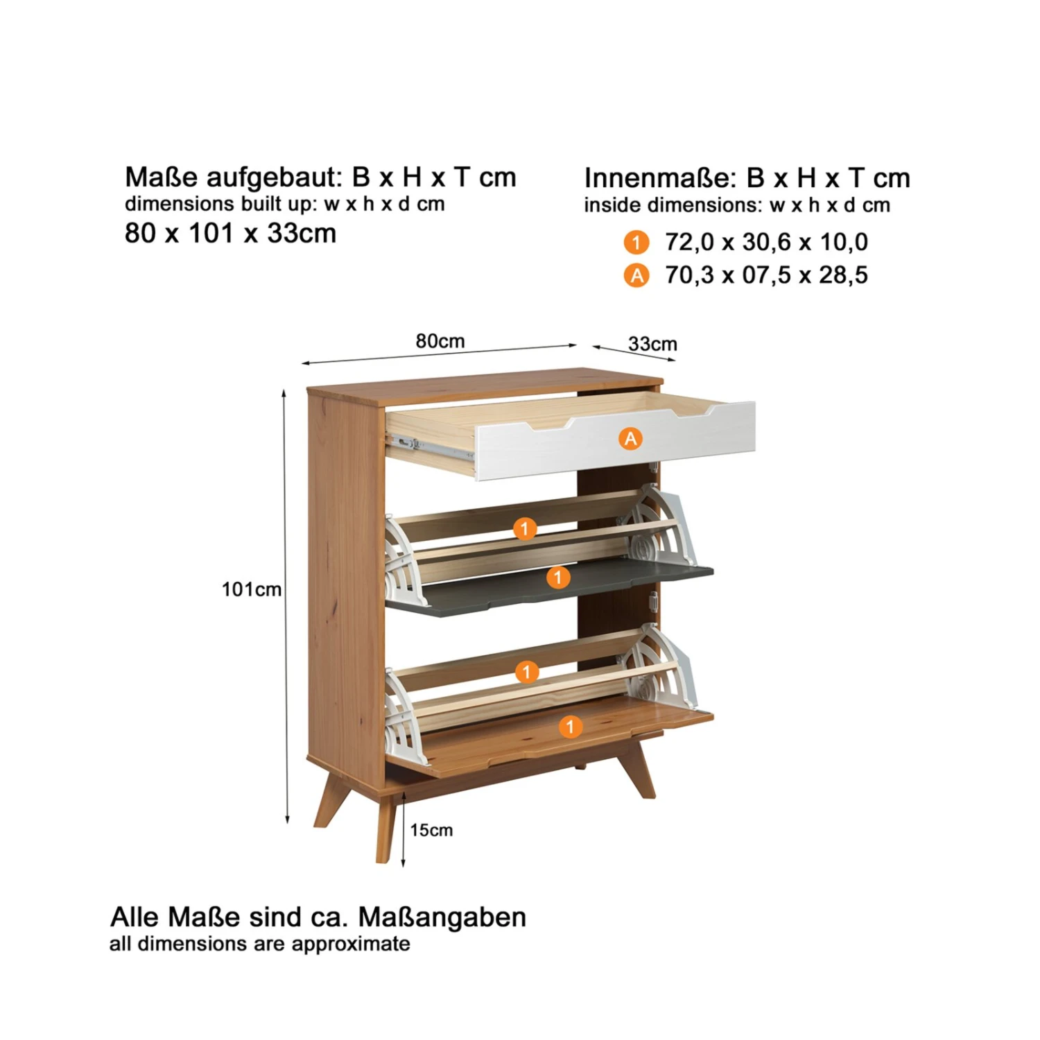 Schuhkipper – honigfarben – Kiefer massiv – 80 cm breit
