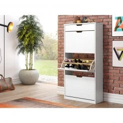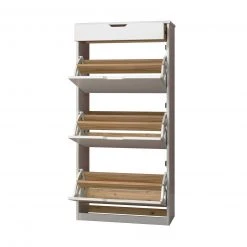 Mit diesem Schuhkipper bringen Sie endlich die gewünschte Ordnung ins Haus. Mit drei Klappen und einem Schubkasten bringen Sie genügend Stauraum in Ihr Haus.