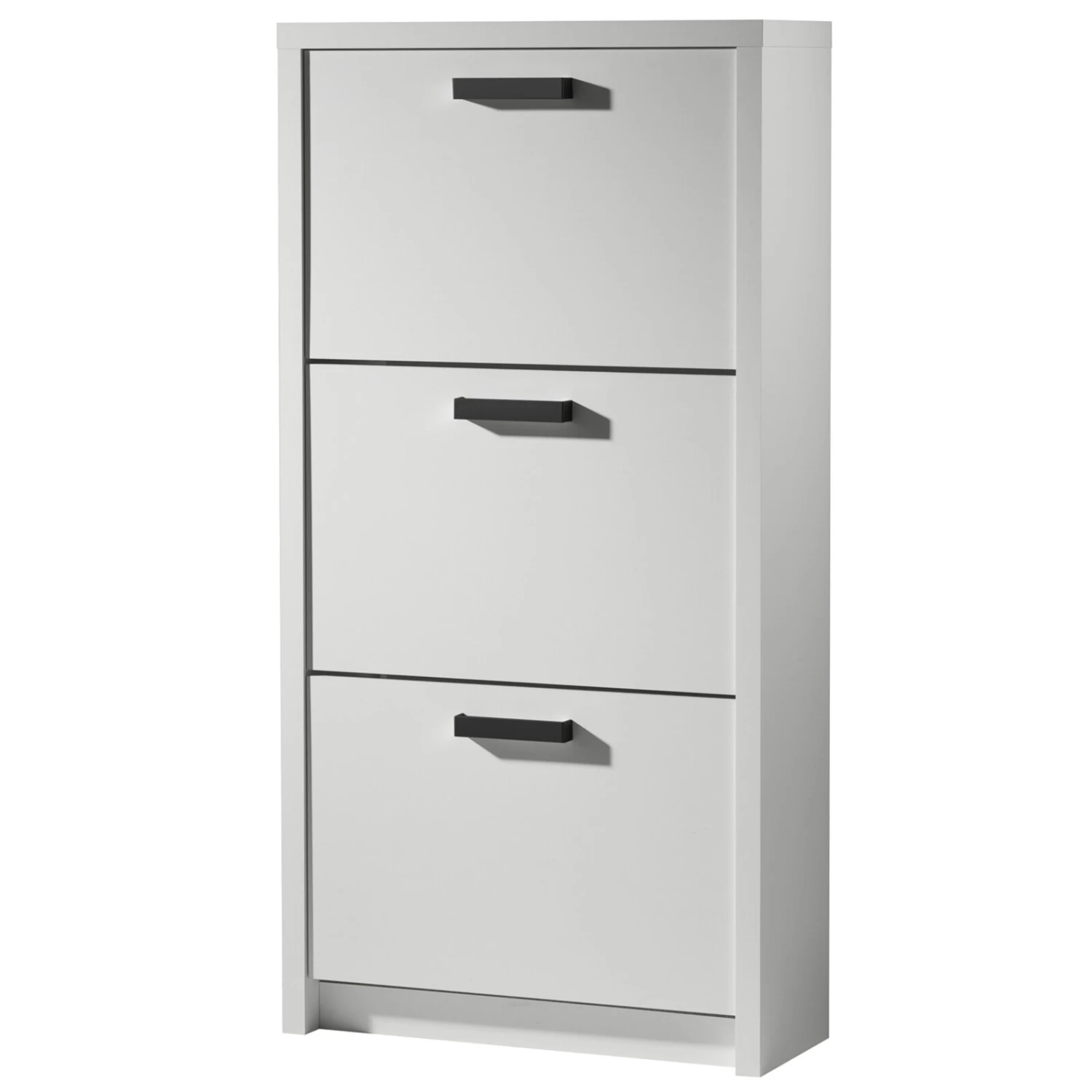 Der Schuhkipper in einem matten Weiß bietet in drei Klappen reichlich Platz für Ihre Schuhpaare und hat zudem ein topmodernes Erscheinungsbild.