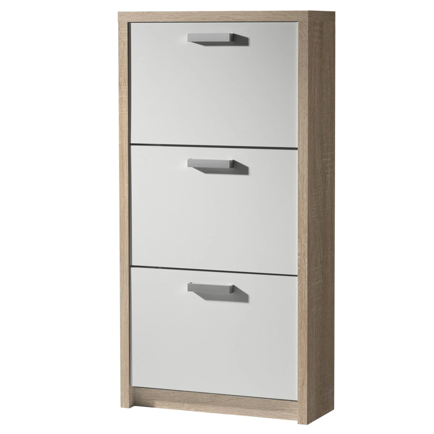 Schuhkipper – weiß – Sonoma Eiche – 3 Klappen