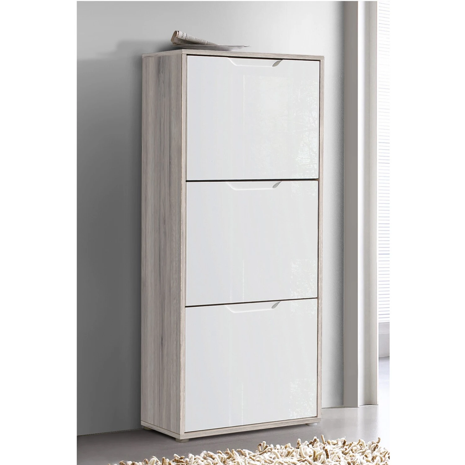 Schuhschrank – weiß Hochglanz-Sandeiche – 55 cm breit