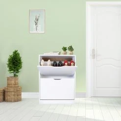 Dieser moderne Schuhschrank enthält zwei Etagen und hilft Ihnen Ordnung in Ihrem Eingangsbereich zu halten. Etwa acht bis zwölf paar Schuh passen in jede der zwei Schubladen. So haben Sie neben der Ordnung auch all Ihre Schuhe in einem Blick. Dieser Schuhschrank ist ein kleines Raumwunder, welches schon bald in Ihrer Diele einkehren kann.
