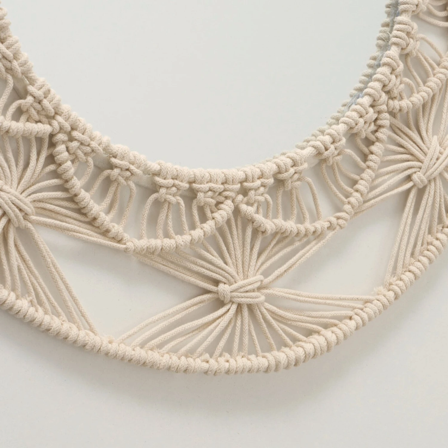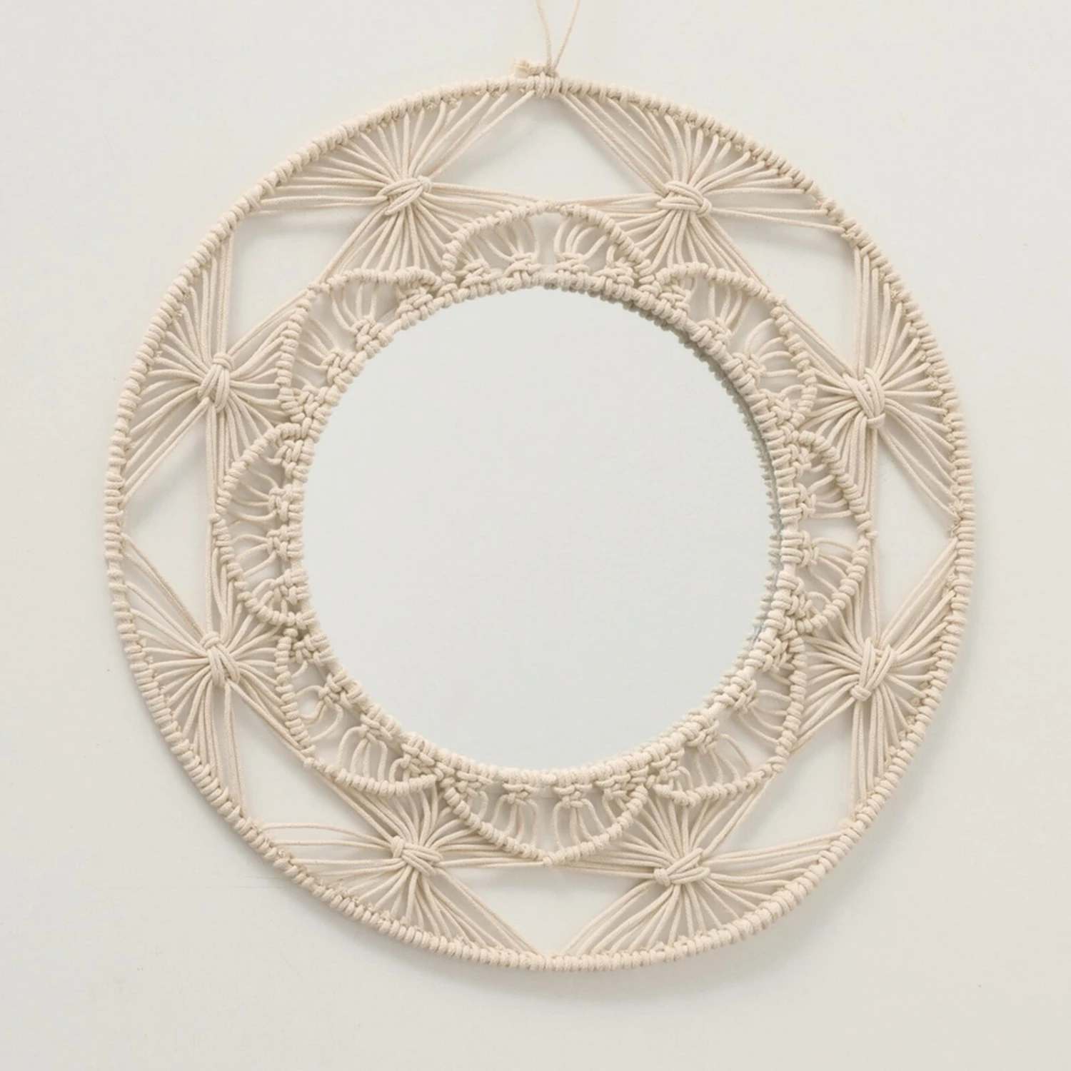 Der Spiegel sieht mit Hilfe der Knüpftechnik Makramee wundervoll aus und bringt Ihnen eine wohlfühlende Atmosphäre nach Hause.