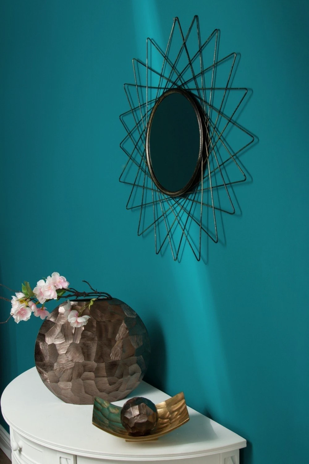 Dieser Wandspiegel ist durch sein besonders schönes Design mit filigranem Strahlenkranz ein Hingucker in jedem Raum. Die Farbgebung in gold-vintage ist modern.