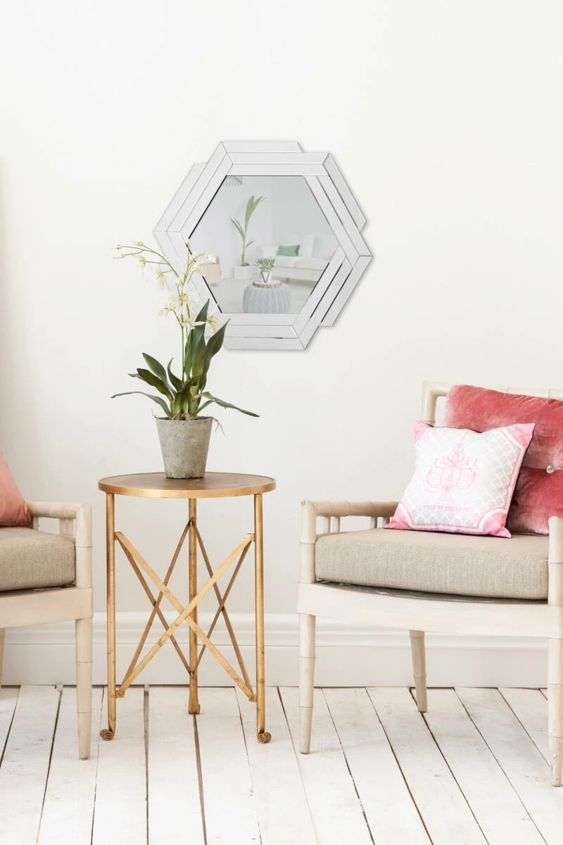 Der Wandspiegel ARTEMIS ist besonders gestaltet. In Hexagon-Form mit kleinen Spiegelflächen um die große Spiegelfläche. Eine zeitlose Wanddekoration, welche schon bald Ihre vier Wände zieren kann.