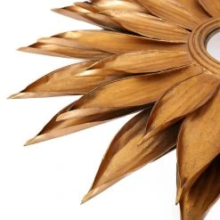 Dieser Wandspiegel LIDIA ist ein ganz besonderes handgefertigtes Unikat. Mit Blattgold veredelt ist er ein herausragendes Exemplar, überaus elegant. In Form einer Blüte präsentiert sich diese individuelle Wanddekoration mit den Maßen von etwa 87 x 87 cm.