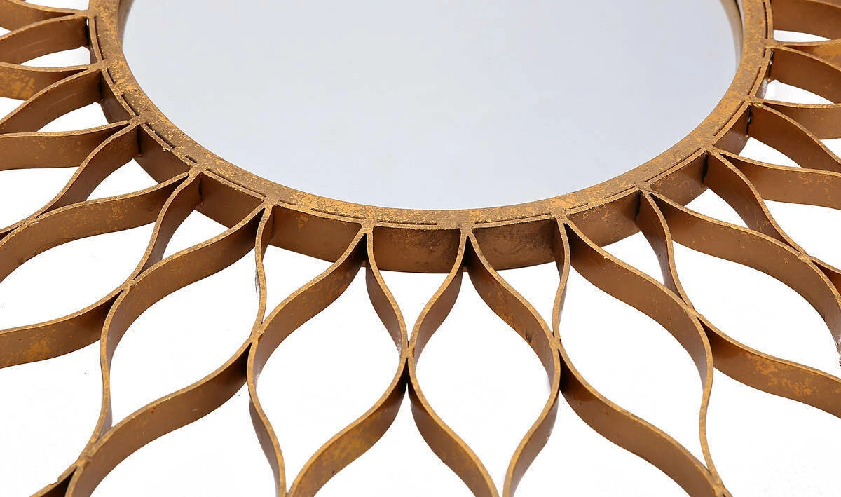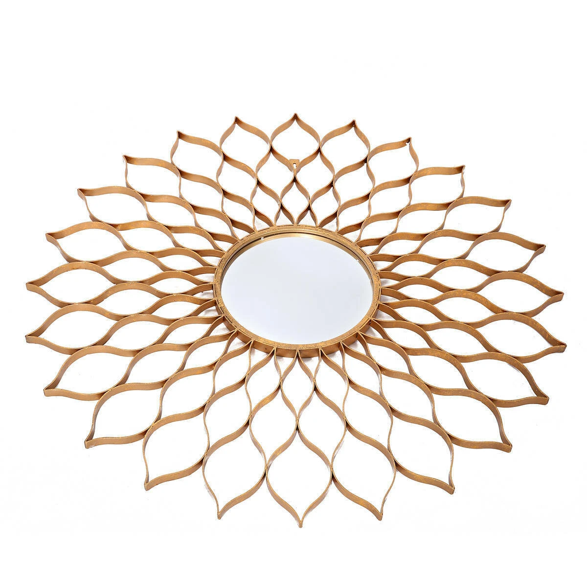 Der Wandspiegel NERO ist ein besonders extravagantes Exemplar einer Wanddekoration. Der Spiegel in Blütenform ist hat einen Rahmen aus Metall, welcher mit Blattgold veredelt ist. Er versprüht eine elegante Atmosphäre und ist eine perfekte Alternative für ein Wandbild.